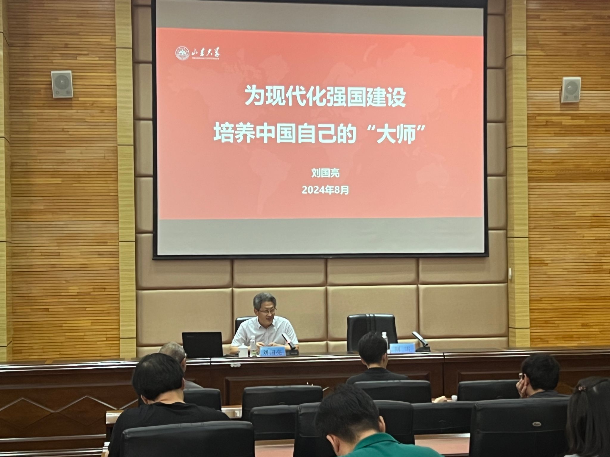 8月30日,山东省研究生教育学会会长、山东大学研究生院原院长刘国亮受邀作《为现代化强国建设培养中国自己的“大师”》的报告,2024年新聘研究生导师参加报告会。刘国亮从时代方位、使命坐标、原则遵循、山大行动四个方面,探讨了新时代研究生教育如何培养中国自己的大师这一时代命题。