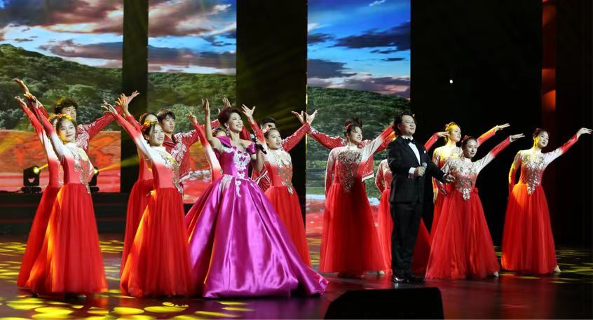舞蹈学院学生表演了开场舞蹈串烧《中华民族一家亲》,舞者们用灵动的舞姿和欢快的节奏,诠释了爱党爱国爱家乡的真挚情感。现代音乐学院教师孙露、张学成演唱的《领航》作为演出压轴节目登场,深情表达了人民群众永远跟党走、奋进新征程的坚定决心,抒发了亿万中华儿女爱党爱国的赤子情怀和共同心声。精彩的表演把整场演出的气氛推向高潮,赢得了观众热烈的掌声。
