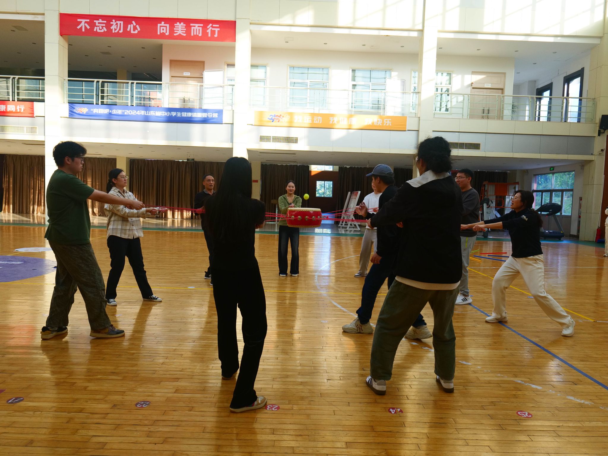 活动中,新入职教师在完成破冰启航环节之后,组成两支团队,队名、口号、队旗创意十足。队员们精神饱满、全身投入到群龙取水、团队圣塔、冰壶大作战、鼓动人生、不倒森林、一圈到底、激情节拍等多个挑战性项目中。通过参与各个项目,新入职教师们不仅学会了如何在团队中发挥个人优势,还掌握了倾听他人、尊重差异、共同解决问题的技能。