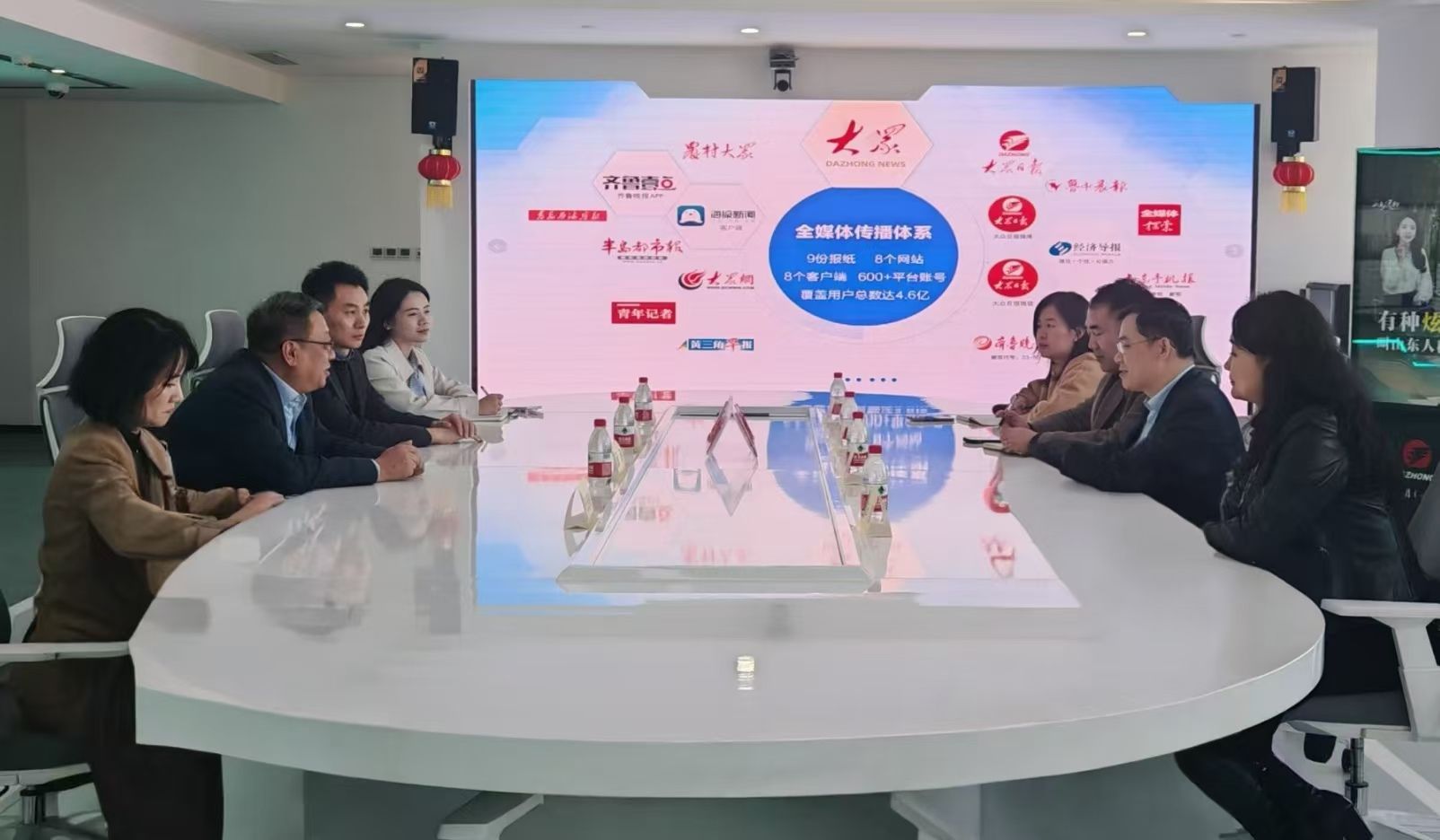 双方围绕建设“新型传媒人联合培养平台”的合作方式、常态化项目落地、学生的引导管理、对接商业平台资源、人工智能赋能新闻传播等话题展开深入交流。蓝海表示,集团高度重视与高校的协同发展,期待通过打造创业实习基地等形式,为山艺传媒学子搭建贴近行业前沿的实践平台,推进校企资源共享,助力新时代下全媒体人才的培养。传媒学院一行对大众报业集团提供的实习机会和实践平台表示感谢,表示将以高度的责任意识和专业水平参与到平台建设和项目合作中,提升传媒学院产学研合作水平,促进毕业生高质量充分就业,努力取得双赢的社会效益,打造校媒合作模范典型。