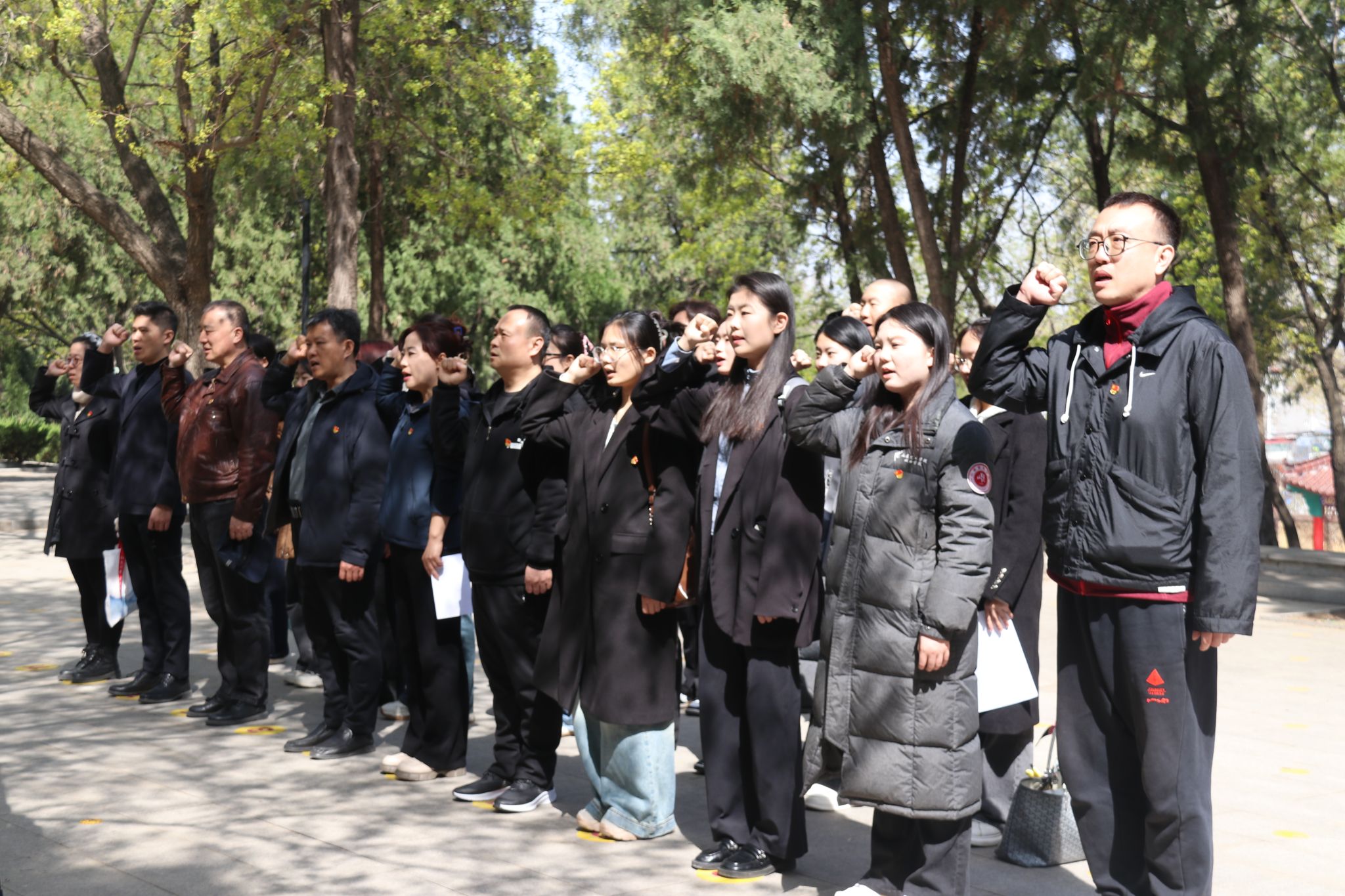 设计学院、艺术管理学院组织党员、团员和入党积极分子赴“一门三烈士”纪念碑广场开展“追寻先烈足迹 赓续红色血脉”主题党日活动。在烈士纪念碑前,全体成员列队肃立,默哀致敬。党员面向党旗重温入党誓词,团员重温入团誓词,以铮铮誓言表达传承红色基因、勇担时代使命的坚定信念。
