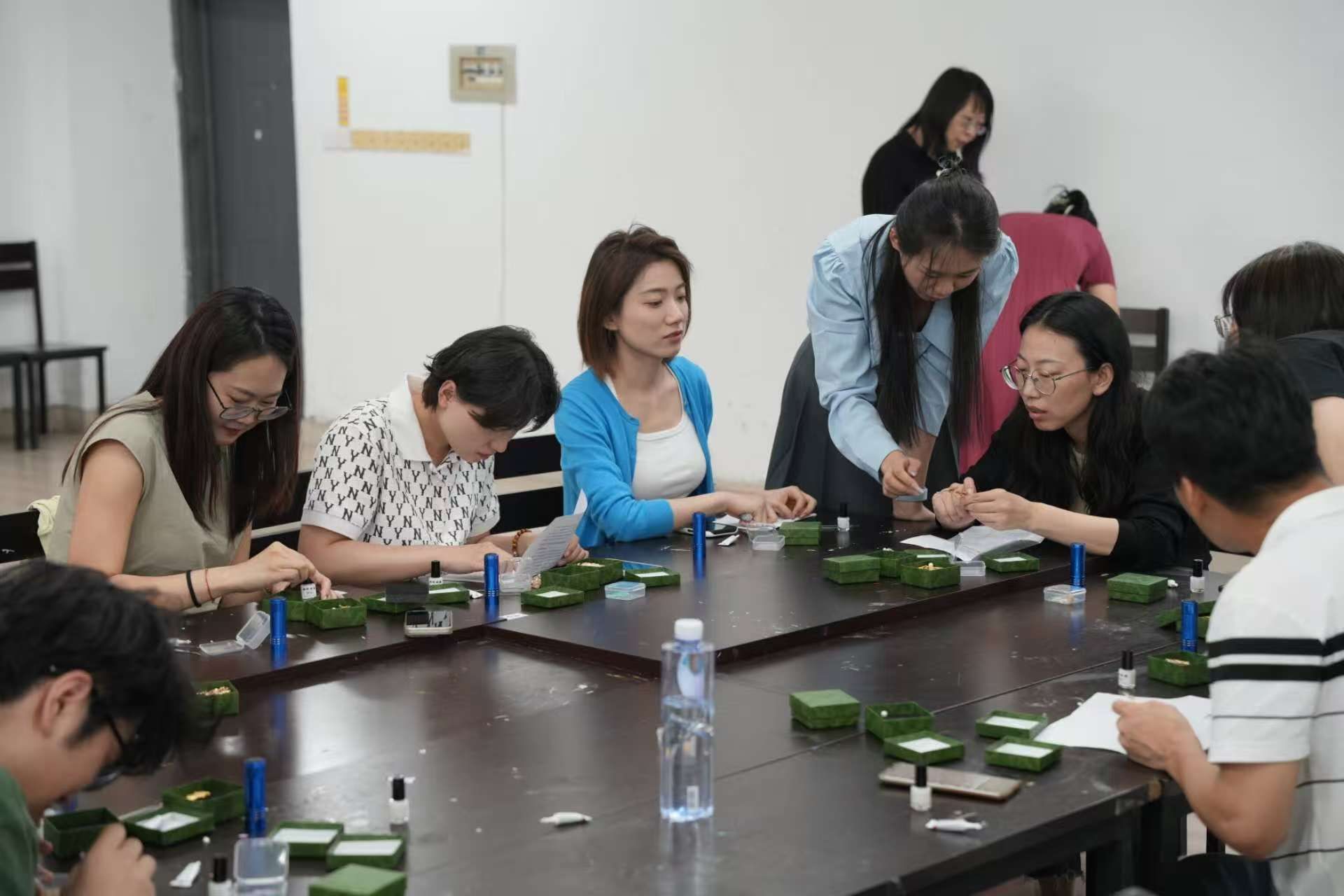 在“螺钿匠心”传统文化培训中,Box Project艺术工坊带来精彩课程。辅导员们系统学习了螺钿工艺千年历史、艺术价值与镶嵌技法,并通过构思、选材、打磨镶嵌等实践环节,深度体验非遗技艺魅力。