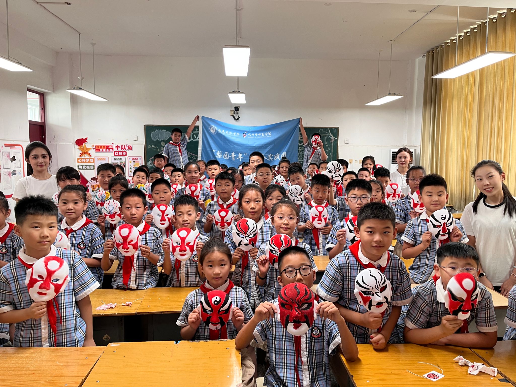 志愿者们走进课堂,为孩子们普及戏曲传统专业知识,并开展戏曲脸谱及拨浪鼓彩绘。从戏曲起源到行当分类,从程式化动作再到戏曲美学,他们用趣味讲解和现场演示,带孩子们推开戏曲艺术的大门。创作过程中,志愿者从旁协助,耐心讲解脸谱的色彩寓意;孩子们执笔创作,在白色脸谱、拨浪鼓上勾勒油彩,红的忠勇、黑的刚正……一笔一画绘出戏曲角色灵魂,在童真创意中让传统手工成为连接戏曲文化的桥梁。