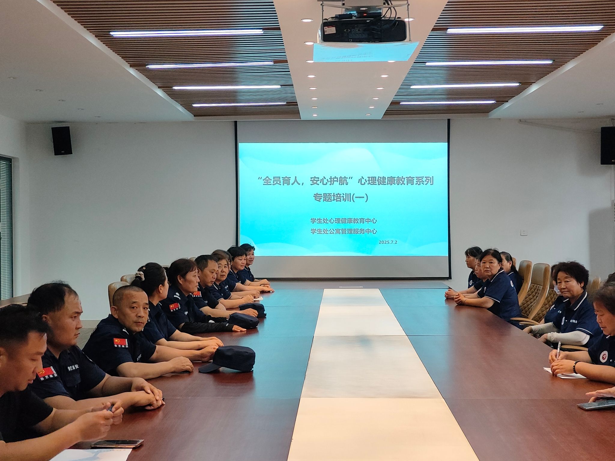 7月2日,学生工作处开展了“全员育人,安心护航”心理健康教育专题培训,公寓管理人员和安保人员近40人参加。