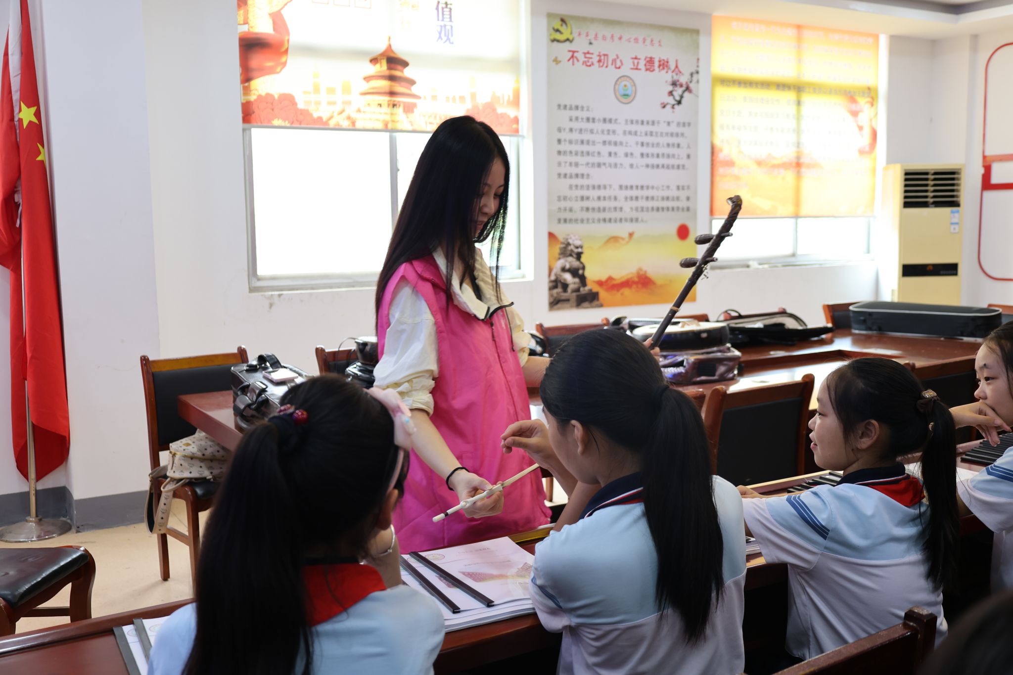 实践团举办了纪念抗战胜利80周年主题文艺汇演,通过民族器乐、京剧、合唱等多种艺术形式,在平邑县与定陶区半堤镇深情演绎,以艺术回望历史、致敬先烈,激发奋进力量。在平邑县白彦镇中心校,队员们化身“艺术导师”,开展美育支教,为孩子们启蒙音乐知识、播撒艺术种子,并走访慰问困难家庭传递温暖。