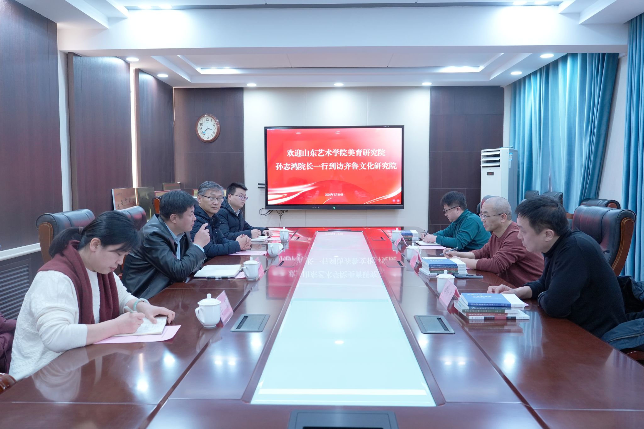 1月19日,美育研究院赴山东师范大学齐鲁文化研究院开展学习交流活动。齐鲁文化研究院党委书记颜春杰、院长吕文明、副院长李莉、学术副院长李文昌参加交流座谈会。