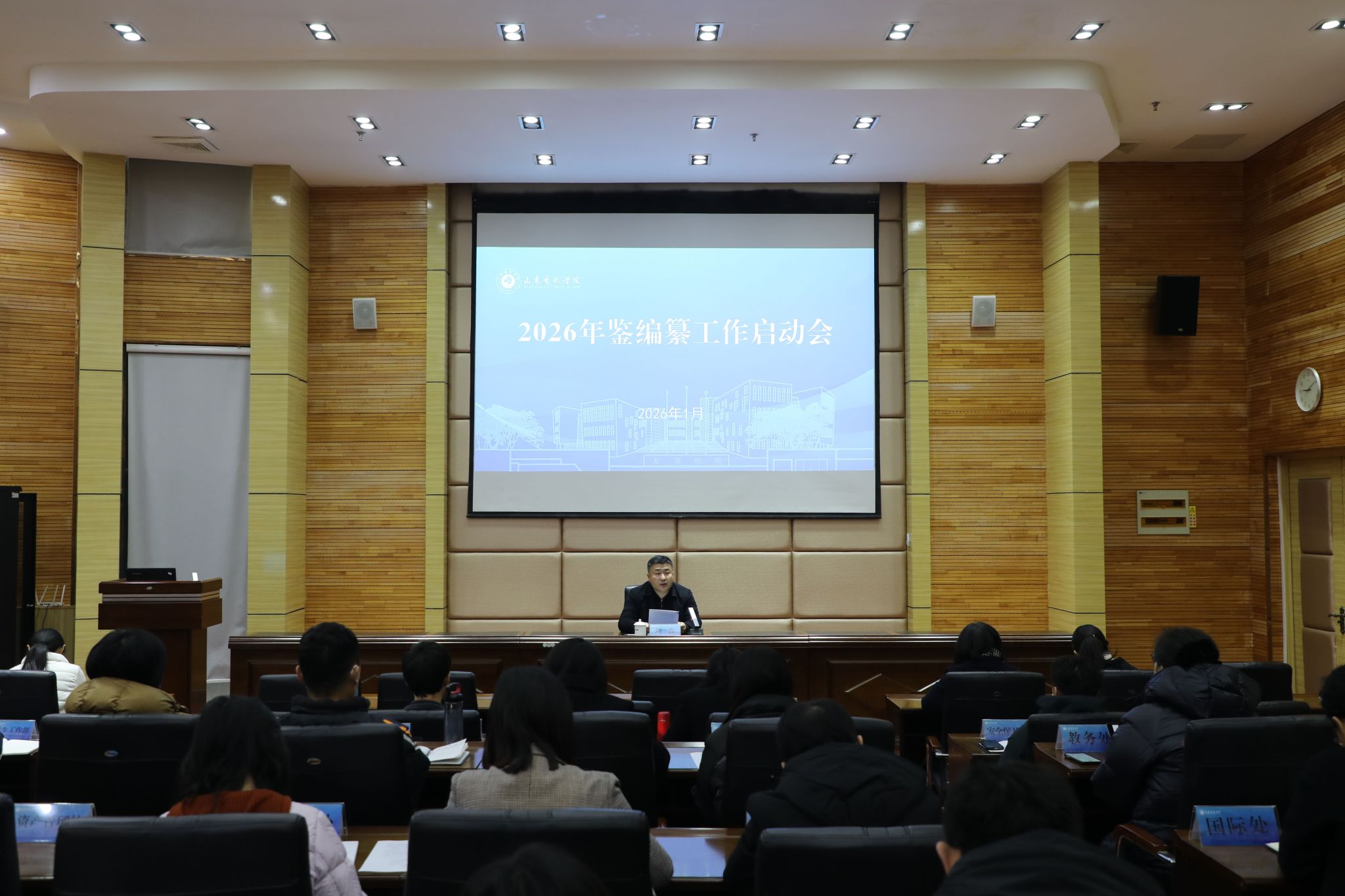 1月28日,学校在长清校区办公楼报告厅召开2026年鉴编纂工作启动会。党办院办负责人及相关工作人员,各单位、各部门年鉴撰稿人参加会议。