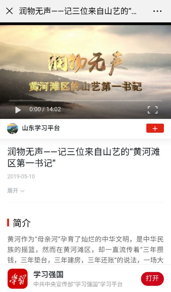 其中,舞蹈学院副教授孟梦的评论文章《蒋祖慧:足尖上的风采》(首发于《光明日报》2019年4月12日),被中宣部主办的“学习强国”学习平台转载;传媒学院副教授刘强带领广播电视编导专业影视学方向刘思岑、贾浩哲、郝春雨、马雪梅等9名学生创作的视频《润物无声——记三位来自山东艺术学院的“黄河滩区第一书记”》,在“学习强国”“山东学习平台”发表,并被“学习强国”全国学习平台以《来自脱贫攻坚一线的报告》为题在首页推荐。