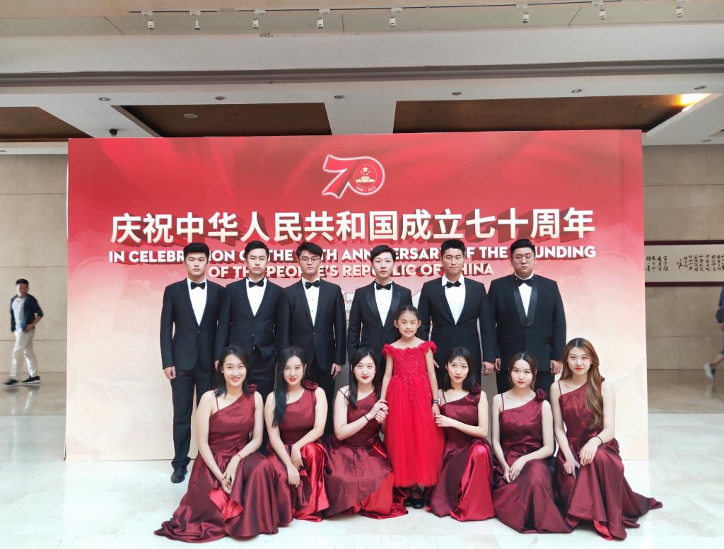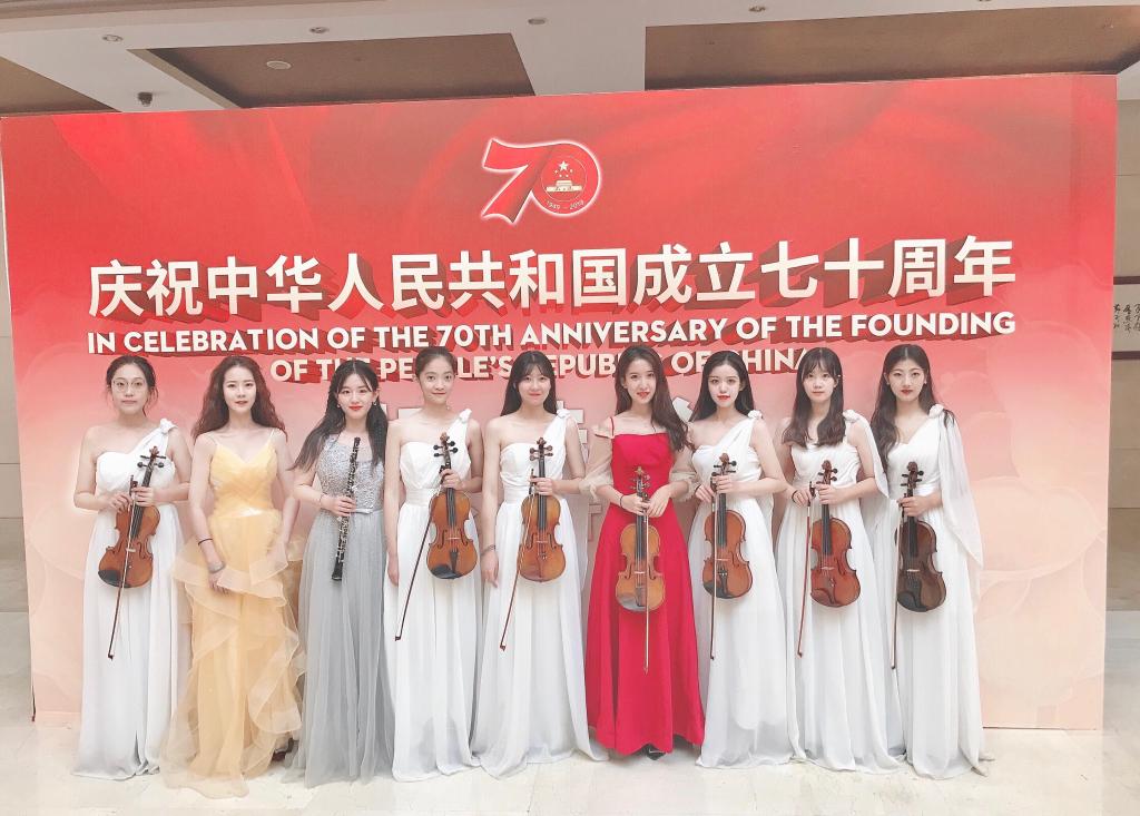 9月29日,山东省庆祝中华人民共和国成立70周年招待会在山东大厦金色大厅举行。我校音乐学院“泉韵女子弹拨乐团”“青年交响乐团”“青年合唱团”应邀参加招待会文艺演出。