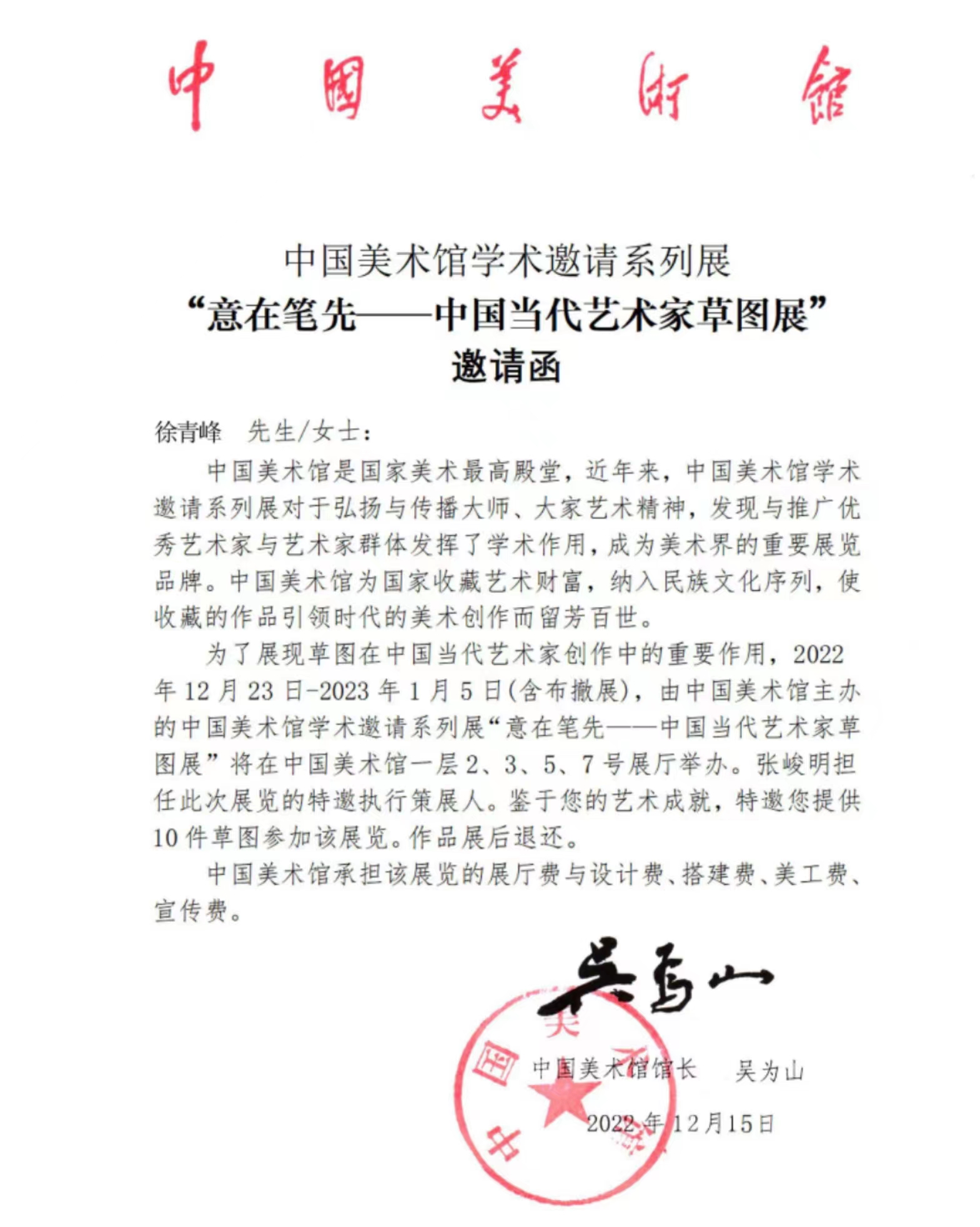 12月25日,“意在笔先——中国当代艺术家草图展”在中国美术馆开展。由校长徐青峰教授领衔,赵旸副教授、李善阳教授、张新文副教授参与合作的《共和国勋章获得者》草图受邀参加此次展览,并被中国美术馆收藏。徐青峰创作的油画《汪辜会谈》(小稿)《中南海的灯光——邓小平与谷牧》(小稿)同展展出。