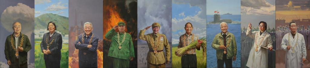 《共和国勋章获得者》(草图)作者:徐青峰、赵旸、李善阳、张新文 布面油画 70×35cm 2022年