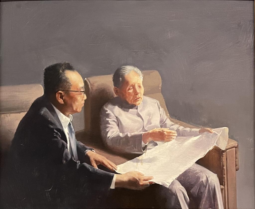 《中南海的灯光——邓小平与谷牧》(小稿)作者:徐青峰 布面油画 50×60cm 2019年
