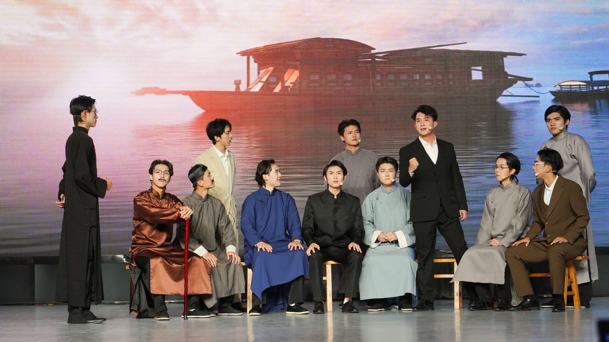 音乐剧《红船往事》由现代音乐学院30余名同学演出,青年教师朱叶博士导赏。作品紧扣首创、奋斗、奉献为核心的“红船精神”,围绕“不忘初心、不懈追寻”的思想理念,在舞台上再现了103年前,具有坚定信念的革命先驱,冒着生命危险,冲破重重阻挠,“开天辟地”建立中国共产党的伟大历程,歌颂了革命先辈的爱国情怀与丰功伟绩。赏析会上,选取了《红船往事》的《石库门》《红色宣言》《转移》《南湖水》《初升的太阳》《杨开慧入狱》《杨柳催春》《红船启航》八个场景进行演绎,以青年毛润之与杨开慧为核心人物,着力表达了开天辟地、敢为人先的首创精神,坚定理想、百折不挠的奋斗精神,立党为公、忠诚为民的奉献精神,使“红船精神”更具时代感、观赏性、共鸣度、大众化。