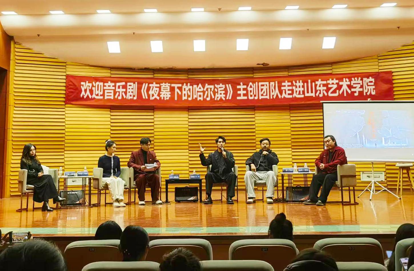 11月13日,音乐剧《夜幕下的哈尔滨》主创团队走进山东艺术学院,在文东校区艺术剧场音乐厅举行“台前幕后——与音乐剧主演面对面”专题交流活动。山东艺术学院原副院长张家信,现代音乐学院师生近300人现场观摩活动。
