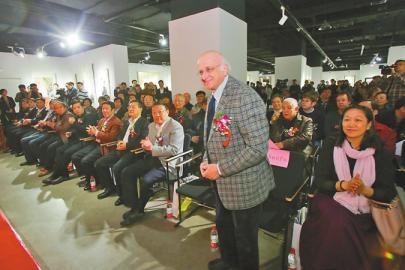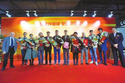 意大利著名策展人桑弗被评为“齐鲁画坛年度策展人”“齐鲁画坛年度艺术家”与颁奖嘉宾合影 本版照片均由记者黄中明 实习生刘奎良 刘玉乐 摄□本报记者武文佳见习记者邢