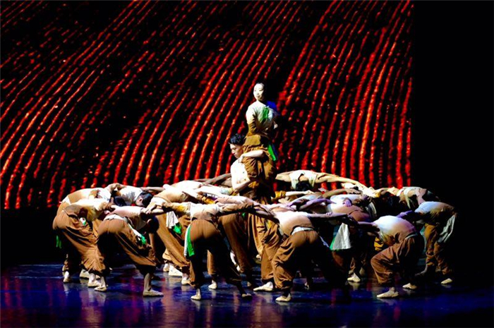 学校党委书记马东骅强调,要充分发挥齐鲁文化和沂蒙精神的优势,结合“六艺育人”特色和艺术院校学生实际情况,挖掘各专业各门课程的思政元素和红色文化资源,通过开展沂蒙精神、黄河入海主题艺术创作、红色剧目排演等实践活动,实现全员全过程全方位育人,坚持以人民为中心,坚持艺术来自人民服务人民奉献人民歌唱人民,为培养中国特色社会主义合格建设者和可靠接班人作出新的更大贡献。在此方针指引下,学校师生积极投身沂蒙精神主题艺术创作,仅仅是近五年,学校教师承担沂蒙精神主题部省级以上科研项目6项,在CSSCI期刊发表及重要转载的论文2篇,高水平艺术原创成果6项(含国家艺术基金资助项目5项,按年度顺序分别是群舞《沂蒙那座——桥》、独奏曲《魂牵沂蒙》、舞剧《沂蒙》、歌曲《再唱沂蒙山》、主题美术创作《新沂蒙》)。其中,群舞《沂蒙那座——桥》集国家艺术基金项目、全国舞蹈比赛获奖作品、中央电视台全国电视舞蹈大赛获奖作品、中国舞蹈“荷花奖”比赛获奖作品等多项殊荣于一身。《沂蒙那座——桥》的道具是一块重达100多斤的木板,演出过程中,6位演员要一直扛着木板,这对女舞者是个很大考验。“如果仅是木板还好,关键是A角舞者还要在木板上舞动,很多演员都留下了肩伤。”作品的编舞、舞蹈学院青年教师刘忠非常感动地说。演员让刘忠感动,沂蒙人民更让演员感动,真情涌动,成就了《沂蒙那座——桥》舞台上的辉煌,筑起了山艺人沂蒙精神艺术表达抵达人民心坎、通往艺术百花园的“沂蒙那座——桥”。