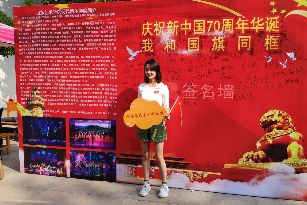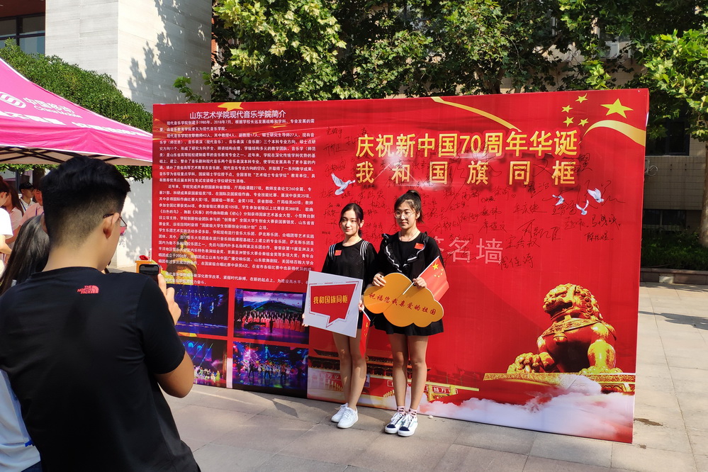 迎新现场设置了“我与国旗合张影”签名墙,让学生在入学第一天,用仪式感的纪录,在山艺,向青春致敬、向祖国表白。