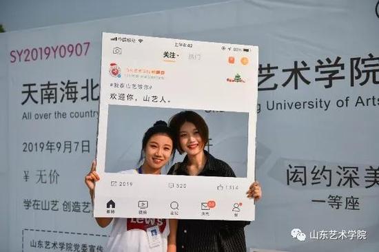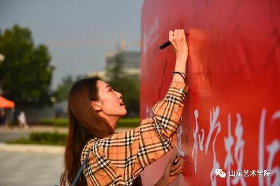 学校相关部门、各二级学院还将迎新特色活动与庆祝新中国成立70周年相结合,引导新生将个人成长与祖国发展联系在一起,涵养爱国情操、家国情怀。在学校门口设立了“我与国旗合张影”签名墙,让学生在入学第一天,用仪式感的纪录,向青春致敬、向中华人民共和国成立70周年表白;“微信微博、学生证合影框”“山艺闳约深美号G2019次车票”,让你不出校门,轻松登热点……;“时间邮局,写给四年后的自己”,大学生记者团制作精美校景明信片,鼓励新生给四年后的自己投寄祝福。大家在轻松愉悦的氛围中充分感受到了山艺人的热情和魅力。