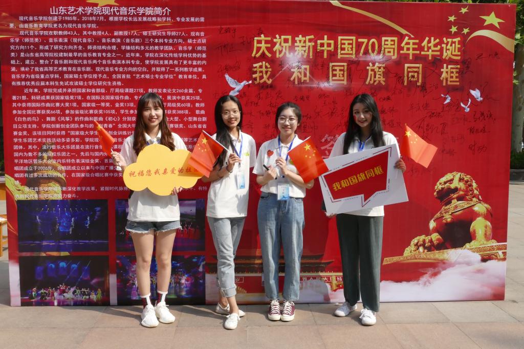 今年正值新中国成立70周年华诞,也是山艺蓬勃发展、迈向建设特色鲜明,国内一流的现代化、高水平艺术大学的重要发展时期,从文化东路91号到紫薇路6000号,风风雨雨六十一载,一代又一代山艺人开拓创新、奋力拼搏,开启新征程,奋进新时代,实现新作为。家长和新生对我校的校园环境、艺术氛围赞不绝口,用“漂亮、艺术、时尚、大气”表达他们的欣喜,“亲切、温暖、热情、耐心”表达他们的感激,为加入山艺大家庭而自豪,也纷纷表达出他们对新中国成立70周年华诞的祝福与期盼。
