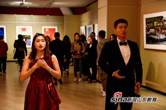 展览现场,山艺音乐学院学子以快闪的形式演唱了《我和我的祖国》,热情嘹亮的歌声在展馆中回荡。现场观众络绎不绝,纷纷表示,本次展览的摄影作品主题鲜明,每一幅作品都在讲述着有关神圣、崇高、和谐、幸福、发展的故事,给人以震撼的视觉冲击和感受。山艺师生走遍祖国的大好河山,记录反映新时代国家的稳定发展、社会的繁荣昌盛、人民的幸福安康,表达出师生强烈的热爱祖国、热爱人民的深厚情感。参加展览的学生张绪栋表示,在拍摄之中,强烈的爱国主义情感在我的胸中激荡,课堂教学与实践相结合让我们在学习专业技能的同时更加感受到祖国的强大,以及作为青年学子的使命和担当。