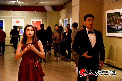 展览现场,山艺音乐学院学子以快闪的形式演唱了《我和我的祖国》,热情嘹亮的歌声在展馆中回荡。现场观众络绎不绝,纷纷表示,本次展览的摄影作品主题鲜明,每一幅作品都在讲述着有关神圣、崇高、和谐、幸福、发展的故事,给人以震撼的视觉冲击和感受。山艺师生走遍祖国的大好河山,记录反映新时代国家的稳定发展、社会的繁荣昌盛、人民的幸福安康,表达出师生强烈的热爱祖国、热爱人民的深厚情感。参加展览的学生张绪栋表示,在拍摄之中,强烈的爱国主义情感在我的胸中激荡,课堂教学与实践相结合让我们在学习专业技能的同时更加感受到祖国的强大,以及作为青年学子的使命和担当。