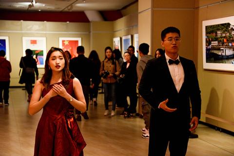 展览现场,山艺音乐学院学子以快闪的形式演唱了《我和我的祖国》,热情嘹亮的歌声在展馆中回荡。现场观众络绎不绝,纷纷表示,本次展览的摄影作品主题鲜明,每一幅作品都在讲述着有关神圣、崇高、和谐、幸福、发展的故事,给人以震撼的视觉冲击和感受。