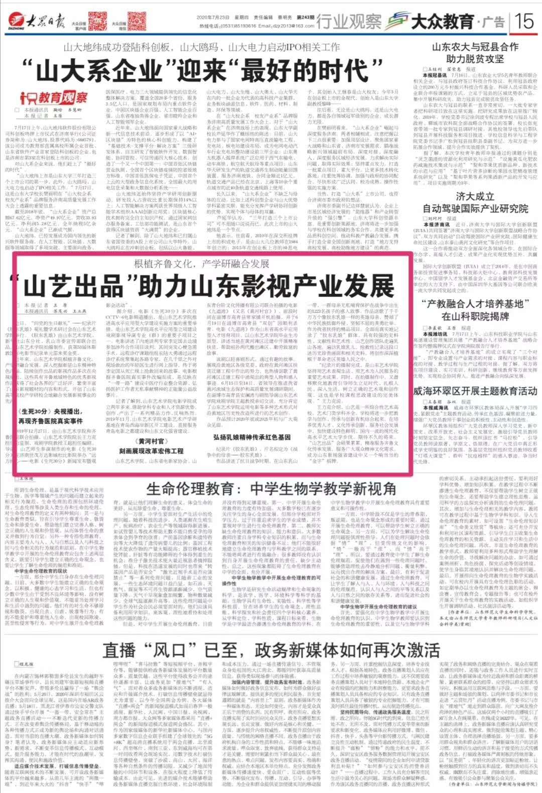 记者了解到,山东艺术学院电影学院成立两年多来,借助学科专业和人才资源优势,创作、产出了一系列精品力作,反响热烈。2019年11月,山东艺术学院电影艺术产学研基地在青岛西海岸新区开工建设,直接服务青岛电影之都建设和山东文化强省建设。