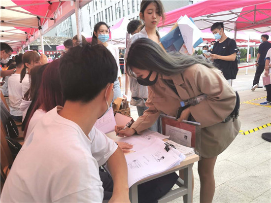在迎新现场,大量高颜值“萌新”出现在各个学院的报到处,“我家是青岛的,一进校门就看到了学校设计的‘国泰民安’山东彩车,真是太壮观了!”今年戏剧学院新生小刘告诉记者,今天是自己来到学校,行李也是自己搬运来的,在报到后,他先参观了一下校园,觉得非常美。对于大学的憧憬,他觉得进入大学是人生新的起点,一定会更加努力在专业上下功夫,不辜负自己的青春。