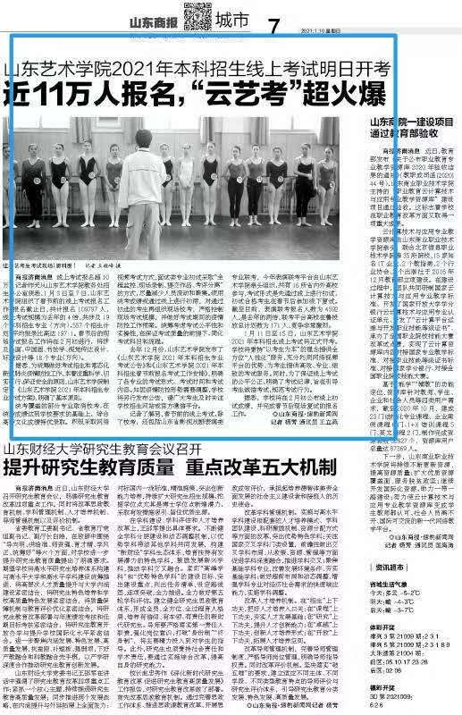 【山东商报】山东艺术学院2021年本科招生线上考试明日开考 近11万人报名,“云艺考”超火爆
