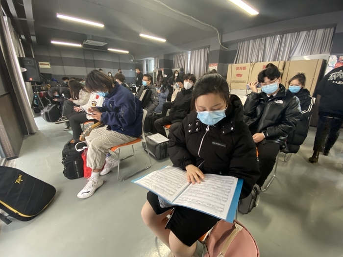 26日上午,新时报记者来到山东艺术学院文东校区音乐剧和现代音乐专业的线下考试现场。相关专业共设置了3个考场,考生分时段进行考试,每个时段考生50人左右。考生到达现场后首先进入备考室,随后分组进入编号室。每个编号室有4至5位工作人员为考生服务,考生进入后,工作人员将扫描准考证二维码信息,随机抽取考试临时编号。