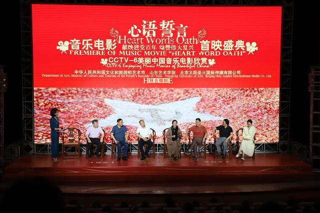6 月 30 日,以“献映建党百年,颂赞伟大复兴”为主题,由国家文化和旅游部艺术司、山东艺术学院、北京太阳圣火国际传媒有限公司联合摄制的音乐电影《心语誓言》在山东艺术学院艺术剧场举行首映盛典。著名主持人、山东艺术学院优秀校友倪萍,中国电视艺术交流协会会长李海明,CCTV-6《美丽中国音乐电影欣赏》总导演、山东艺术学院优秀校友童年,中国电视艺术交流协会常务理事、青年演员丹梓,山东省文联党组书记、副主席王世农,山东影视传媒集团党委副书记王中华,济南市公安局政委王健,济南市长清区委书记赵居安,山东艺术学院党委书记王洪禹、院长徐青峰,山东艺术学院原院长王力克,山东艺术学院党委副书记孔祥华、副院长杨西国、刘晓静、兰绍彤,纪委书记胡凤莹,党委委员荆雷、苏茂兴出席,学校有关学院、部门负责人、师生代表参加活动。