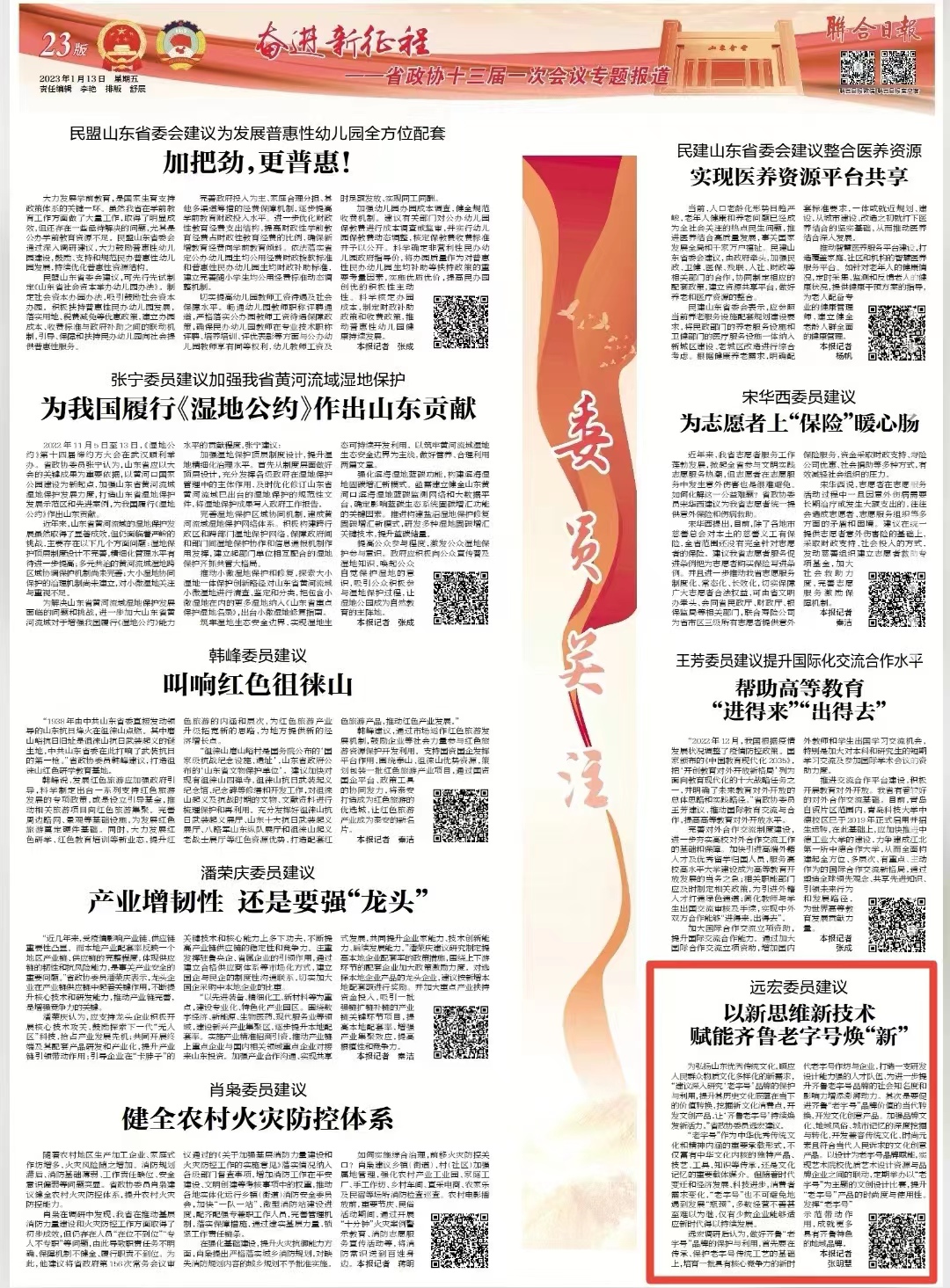 为弘扬山东优秀传统文化,顺应人民群众物质文化多样化的新需求,“建议深入研究‘老字号’品牌的保护与利用,提升其历史文化底蕴在当下的价值转换,挖掘新文化消费点,开发文创产品,让‘齐鲁老字号’持续焕发新活力。”省政协委员远宏建议。