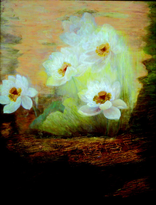 每位艺术家都有不同的艺术语言,由感而发,由心而画。青年艺术家黄祺一直在创作中寻求思想的载体和灵魂的归属感,新材料的介入令他如鱼得水。蜡质、胶质和油彩所碰撞出的全新的视觉效果,可以把人带入一片更广阔的天地,让艺术意图实现更全面的呈现,如青年艺术家周墨创作的《月光女神》,微浮雕的感觉让画面更有质感,这是一般水墨所不能达到的。