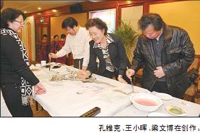 2月23日,农历二月初二,庆祝齐鲁晚报创刊25周年书画高端笔会在山东新闻大厦举办。应本报之邀,国画名家单应桂、丁宁原、郭志光、吴泽浩、曾昭明、张宝珠、冷珍、沈光伟、刘书军、张志民、孔维克、韦辛夷、梁文博、王小晖,书法名家刘广东、于钦彦、刘锡山、杨炳云、范正红欢聚一堂,他们创作了一幅幅笔精墨妙的佳作,为本报25岁生日献上了一份厚礼。