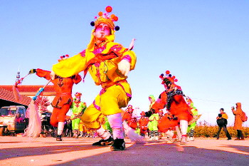 让张荫松担忧的是,近年来,海阳秧歌等为了适应社会环境,变得比以前热闹、火爆了,但是真正有价值的东西越来越没有了,主要形式,内容都减少了。同时,表演队伍也没有钻研劲了。过去,表演队起码有一个星期的封闭性训练时间,可现在队伍中年轻人比划一个路子,接着就敢走队形敢上街,所以看着很粗糙,这都妨碍了秧歌的发展和传承。