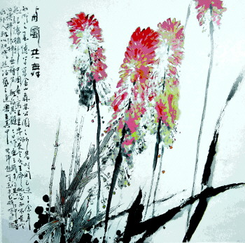 《与风共舞》 沈光伟 花头造型在写生的基础上艺术地夸张了,灵感来自鸡毛掸子。