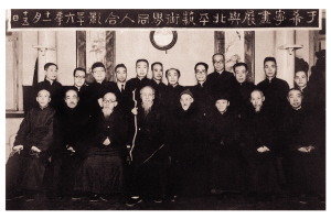 1947年于希宁画展,齐白石、黄宾虹、陈半丁、于非闇等人于展览期间合影(后排左四于希宁)。