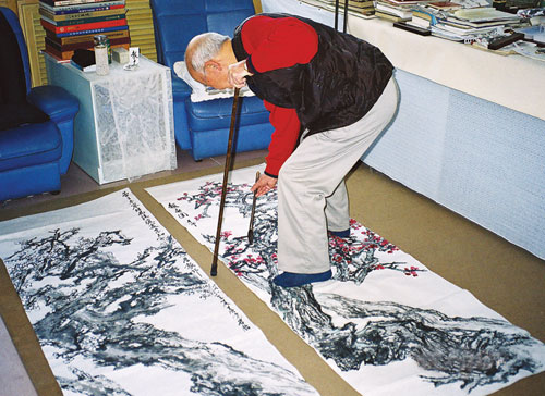 ——有于老这样的老师,是我们的福分!无论从为人还是治学方面,他都为我们做出了表率。在我的脑海里,前些年我陪于老一起去外地写生的情景总是清晰如昨。我们曾一起去苏州、杭州、武汉,每到一处,他不顾年老体弱,总是笔耕不辍,每次归来,画稿诗稿盈箧,让我们这些学生汗颜。他写的“梅花”诗有千余首,其他题材的诗、画也十分丰富多彩。他一辈子都执著于艺术,直到去世前几天,我去看他,他关注的还是绘画,还用手指点着怎么运笔……往事如昨,历历在目,我写下了一副挽联“才德修养治艺百载,造就弟子三千,薪火燎原;巨星陨落,大地震颤,留下寒梅万株,香飘人寰”,以此表达对老师的怀念。