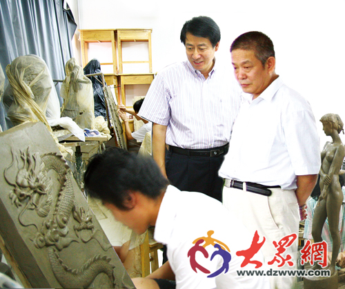 院党委书记柳文敏、院长张志民深入课堂检查学生艺术创作。(摄影:孙希宝)