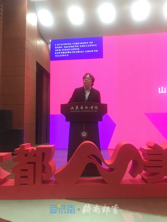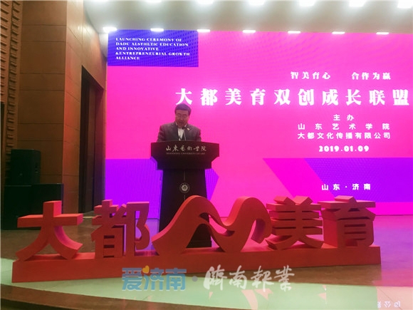 山东艺术学院院长王力克在致辞中首先对与会人员表示欢迎和感谢,并对“大都美育双创成长联盟”的启动表示热烈祝贺。他表示,联盟将在政府部门的支持和指导下,与各大高校联合打造大学生创新创业平台,组建双创导师库,把有想法、有干劲、有毅力、有担当的大学生,组建成一支在全省范围内开展美育、双创工作的团队,面向中小学生设置美术、书法、音乐、舞蹈、体育、主持、校园剧等专门美育教材,制订科学的教学计划和教学课程,以团中央正在推广的“大手拉小手”的形式,利用下午三点半放学至家长下班后接学生回家期间,定点定时到校开展各项公益美育服务。