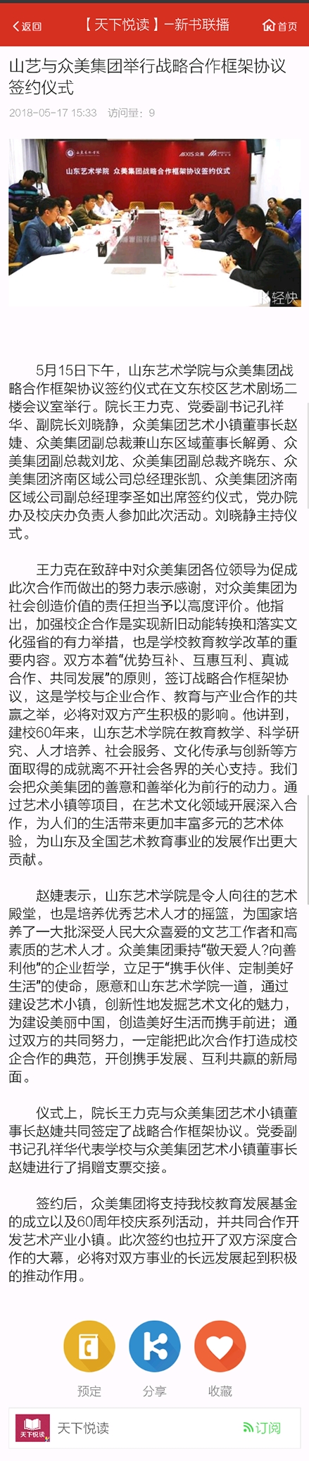 【天下悦读】山艺与众美集团举行战略合作框架协议签约仪式