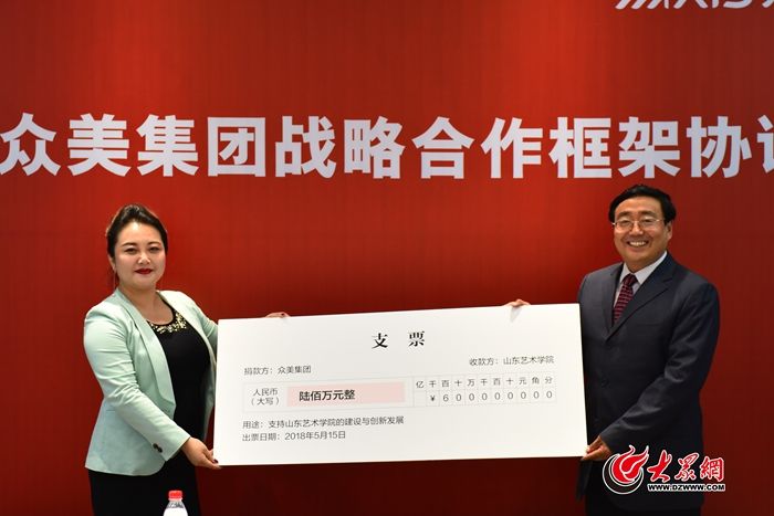 签约后,众美集团将支持我校教育发展基金的成立以及60周年校庆系列活动,并共同合作开发艺术产业小镇。此次签约也拉开了双方深度合作的大幕,必将对双方事业的长远发展起到积极的推动作用。返回济南大众网首页>>