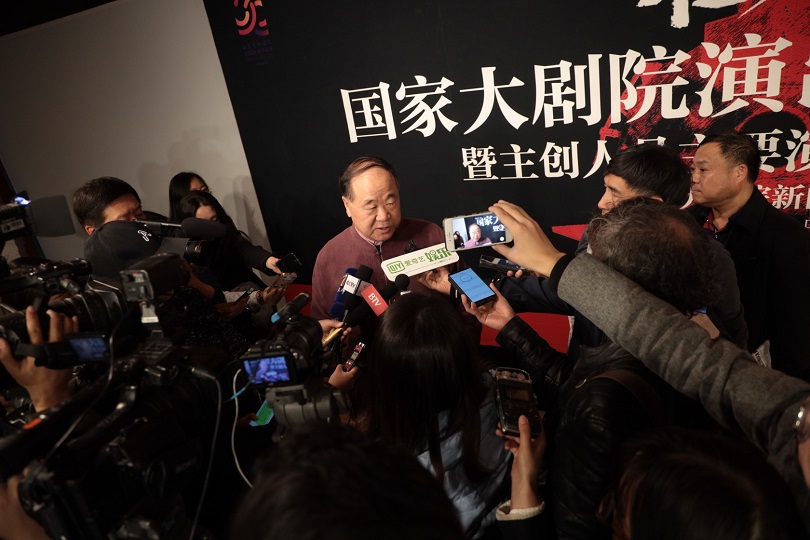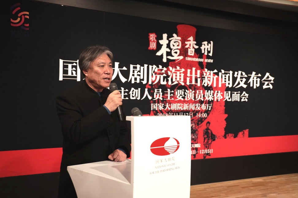 11月12日下午,“歌剧《檀香刑》国家大剧院演出新闻发布会暨主创人员主要演员媒体见面会”在国家大剧院新闻发布厅举行。山东艺术学院党委书记马东骅,编剧莫言、导演陈蔚、指挥张国勇、作曲李云涛等主创人员,主演宋元明、韩蓬、王立夫等出席了发布会。