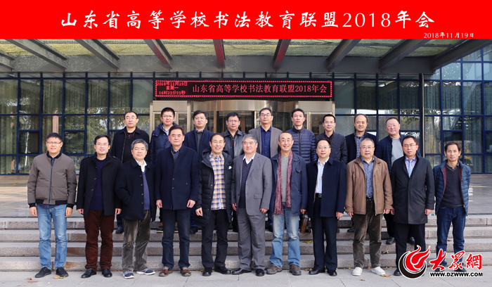 大众网济南11月23日讯(记者 尹延杰 通讯员 王志军)11月19日,由山东省高等学校书法教育联盟主办、山东艺术学院承办的山东省高等学校书法教育联盟2018年度年会在济南召开。中国书协理事、山东省书协常务副主席兼秘书长孟鸿声,山东艺术学院党委书记马东骅、院长王力克,曲阜师范大学书法学院党委书记姜晓强、副院长陈涛、教授朱乐朋、副教授徐传法,临沂大学美术学院书法系副教授房彬、教师张超,山东建筑大学艺术学院副教授谭延祯,齐鲁师范学院美术学院院长李广平,山东工艺美术学院造型艺术学院教师杨国栋,齐鲁理工学院艺术学院院长张胜利、教师赵华伟、李胜伟,山东艺术学院美术学院党总支书记常勇、书法工作室主任于明诠、副教授陈靖、教师贾长庆、杨建虎等出席会议。