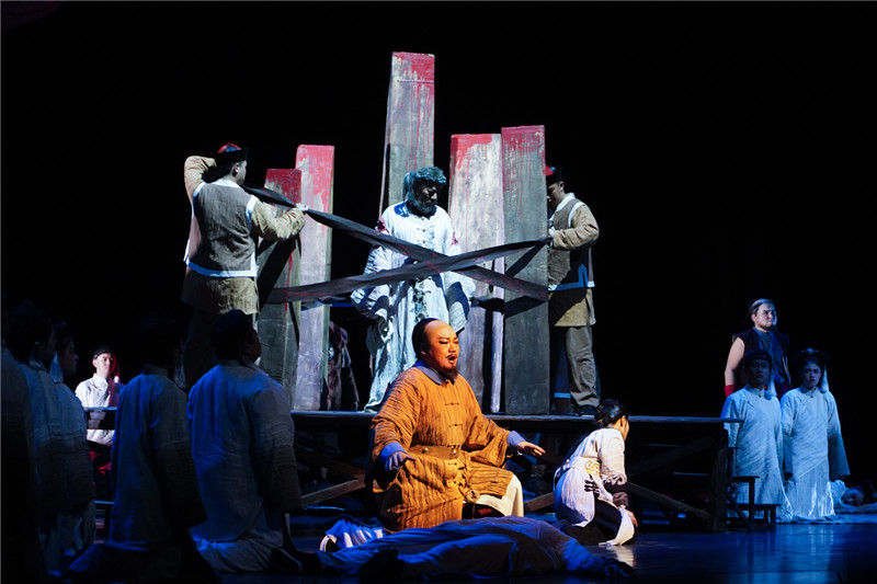 歌剧《檀香刑》是一部充满温度和人文精神的史诗性艺术作品。该剧将西洋传统歌剧形式与民间元素进行了巧妙融合,并运用丰富的作曲技术手段进行处理。是特定历史背景下一曲声振九霄的民族高歌,也是一幅爱与恨、生与死、侵略与反抗的历史画卷。