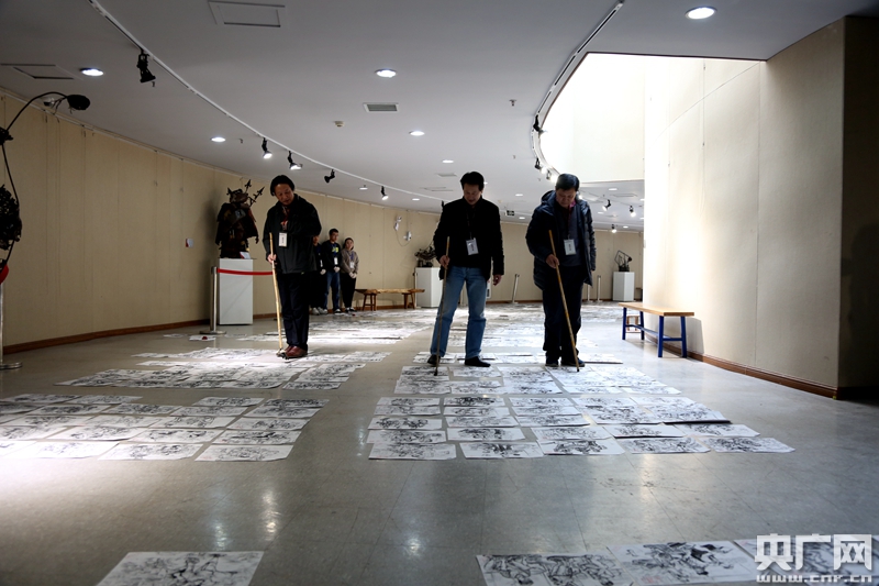 2月28日,山东艺术学院向媒体公开2019年专业招生考试美术类阅卷情况。偌大的图书馆走廊内,数千份考生的作品在地面上排开,由评卷组专家进行分档。