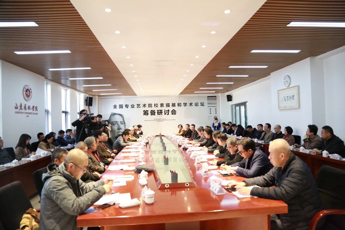 3月23日,由北京靳尚谊艺术基金会、全国艺术专业学位研究生教育指导委员会美术与设计分委会和山东艺术学院联合主办的“全国专业艺术院校素描展和学术论坛筹备研讨会”在山东艺术学院长清校区办公楼二楼会议室隆重召开。来自中央美术学院、中国美术学院、西安美术学院、天津美术学院、四川美术学院、鲁迅美术学院、广州美术学院、湖北美术学院、清华大学美术学院、上海美术学院、南京艺术学院、吉林艺术学院、云南艺术学院、广西艺术学院、新疆艺术学院、内蒙古艺术学院以及山东艺术学院等17所国内最核心专业艺术院校的50多位专家参加研讨会及欢迎式。研讨会是由靳尚谊先生发起、曹意强先生担任学术主持的“全国专业艺术院校素描展和学术论坛”的前奏,其规格之高、质量之精、学术之深都是近年来全国少有的一次学术会议。