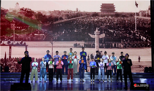 演出前,全体观众起立齐唱《中华人民共和国国歌》,大家群情激昂,热情澎湃。随后,交响乐《红旗颂》正式拉开了演出的帷幕。在上篇的节目中,歌曲《追寻》《绣红旗》《红梅赞》、情景诗朗诵《革命诗抄》、舞蹈《殇》带领观众一起回顾了那段党领导人民一路跋涉、一路凯歌的艰苦卓绝的难忘岁月。在下篇的节目中,歌曲《再唱沂蒙山》将观众带到了欣欣向荣的新时代,让他们仿佛听到了响彻华夏的一声声怒吼,看到了屹立东方的英武雄狮;在情景表演《我心中的“旗帜”》里,我们也着实感受到了那面迎风飘扬的鲜红旗帜在无数共产党人心目当中的崇高地位;在京歌《中国脊梁》和舞蹈《刀锋》中,无数共产党人挺起了胸膛,迎接胜利的曙光;歌曲《我和我的祖国》唱出了我们对党的热爱、对新中国的颂扬。演出在恢弘博大的舞蹈《红旗颂》中落下帷幕。最后,现场观众与全体演职人员一起高唱《没有共产党就没有新中国》,将整场演出气氛推向高潮。