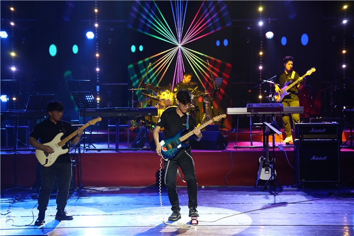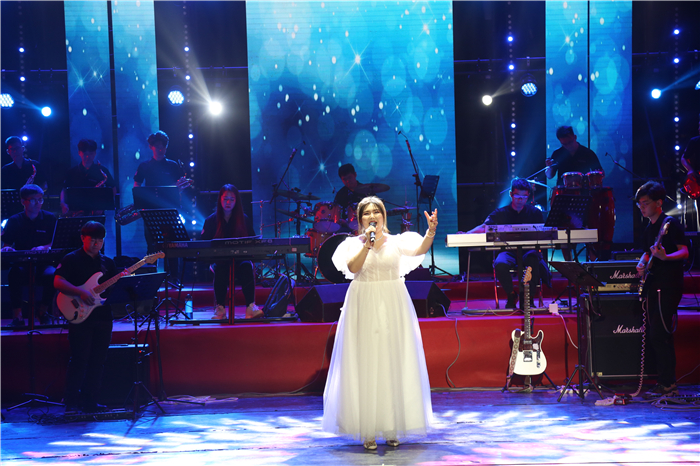 音乐会上,流行音乐表演专业的同学们展现了15首曲风各异、精彩纷呈的音乐作品。开场的大乐队合奏《Gonna Fly Now》和《Tico Tico》迅速点燃现场,磅礴大气的曲风、精湛的演奏技巧博得了观众的阵阵喝彩;两组歌曲联唱《关于青春的记忆》完美演绎了从“五四”以来各个历史时期的中国青年人的昂扬状态;安静柔和的萨克斯演奏《Hey Jude》诠释出亲情的忧伤与无奈;歌曲《康定情歌》《Rolling In The Deep》《喜欢你》等作品也同样用音乐的方式细腻地表达出人们内心的不同情绪,打动了每一位听者的心;电吉他、电贝司与原声鼓,碰撞出来的摇滚风格将所有的感情都融合在《Surfing With The Alien》之中;手风琴二重奏《山楂树》则让听众体验了浓浓的俄罗斯风情;阿卡贝拉《平凡之路》讲述了当下社会青年对于人生的思考,完美的和声让听者在安稳的旋律感中享受平静与纯真;原创歌曲《青春当前》是现代音乐学院为学校60周年校庆专门创作的,清新的歌词、婉转的曲调,折射出山艺人站在新时代、新甲子的心路与情怀;原创歌曲《青春向祖国报告》是专门为此次音乐会创作的主题歌,“太多的心语需要倾诉,满腔的热血渴望燃烧”表达了新时代大学生报效祖国的强烈愿望。整场演出在激昂的歌声中完美落下帷幕。