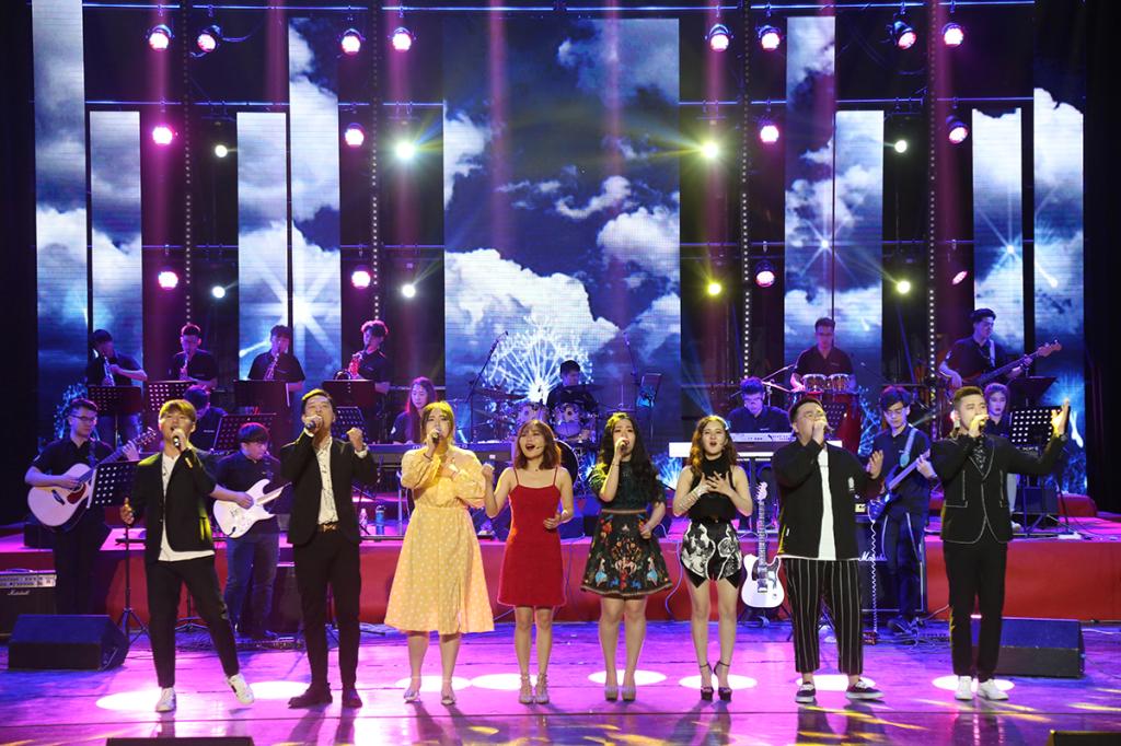 音乐会上,流行音乐表演专业的同学们倾尽所学,展现了15首曲风各异、精彩纷呈的音乐作品。开场的大乐队合奏《Gonna Fly Now》和《Tico Tico》迅速点燃现场,磅礴大气的曲风、精湛的演奏技巧博得了观众的阵阵喝彩;两组歌曲联唱《关于青春的记忆》完美演绎了从“五四”以来各个历史时期的中国青年人的昂扬状态;安静柔和的萨克斯演奏《Hey Jude》诠释出亲情的忧伤与无奈;歌曲《康定情歌》《Rolling In The Deep》《喜欢你》等作品也同样用音乐的方式细腻地表达出人们内心的不同情绪,打动了每一位听者的心;电吉他、电贝司与原声鼓,碰撞出来的摇滚风格将所有的感情都融合在《Surfing With The Alien》之中;手风琴二重奏《山楂树》则让听众体验了浓浓的俄罗斯风情;阿卡贝拉《平凡之路》讲述了当下社会青年对于人生的思考,完美的和声让听者在安稳的旋律感中享受平静与纯真;原创歌曲《青春当前》是现代音乐学院为学校60周年校庆专门创作的,清新的歌词、婉转的曲调,透出山艺人站在新时代、新甲子的心路与情怀;原创歌曲《青春向祖国报告》是专门为此次音乐会创作的主题歌,“太多的心语需要倾诉,满腔的热血渴望燃烧”完美表达了新时代大学生报效祖国的强烈愿望。整场演出在激昂的歌声中完美落下帷幕。